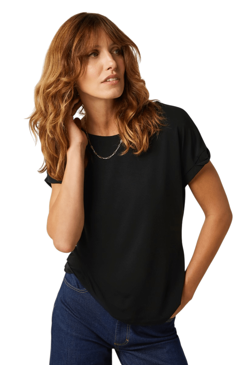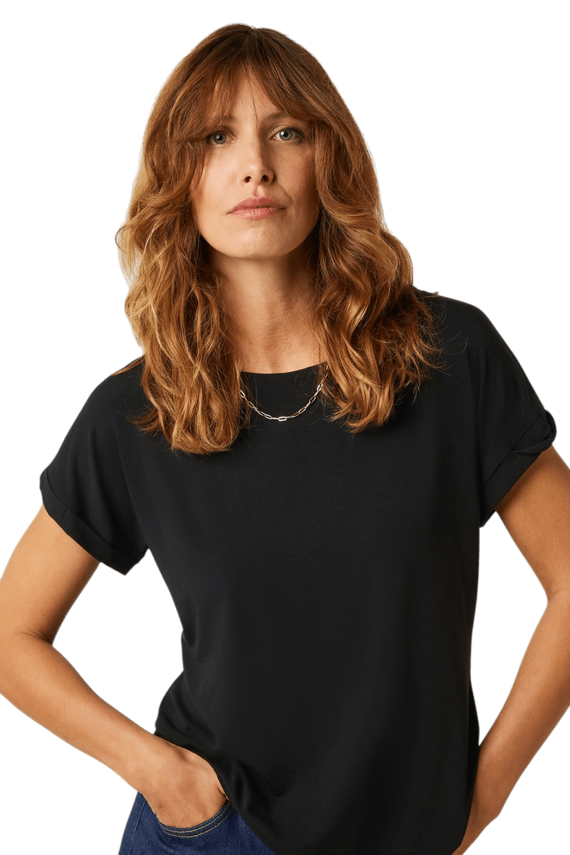 Het model heeft een ronde halslijn en kapmouwen, wat zorgt voor een vrouwelijke en tijdloze uitstraling. Dankzij de standaard pasvorm en het effen ontwerp is deze top gemakkelijk te combineren met zowel casual als meer geklede outfits.