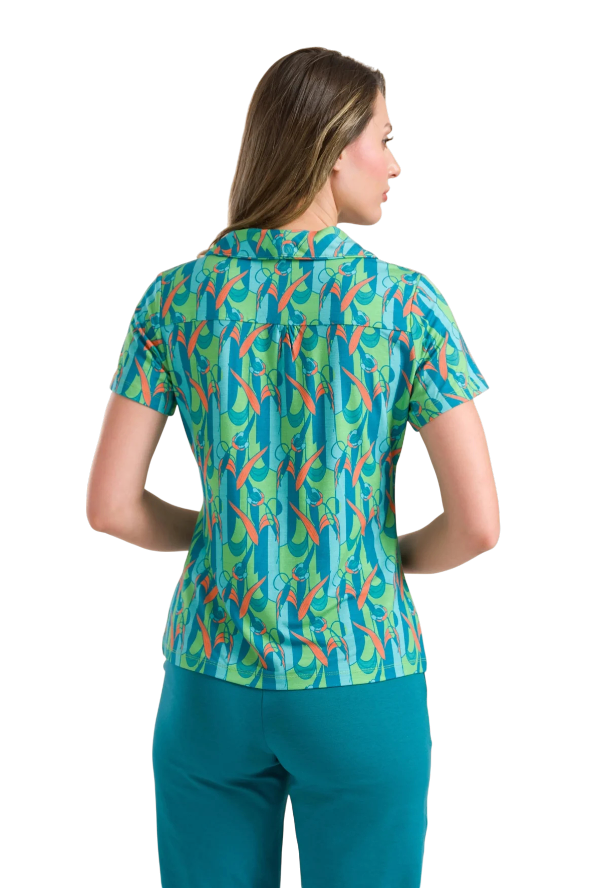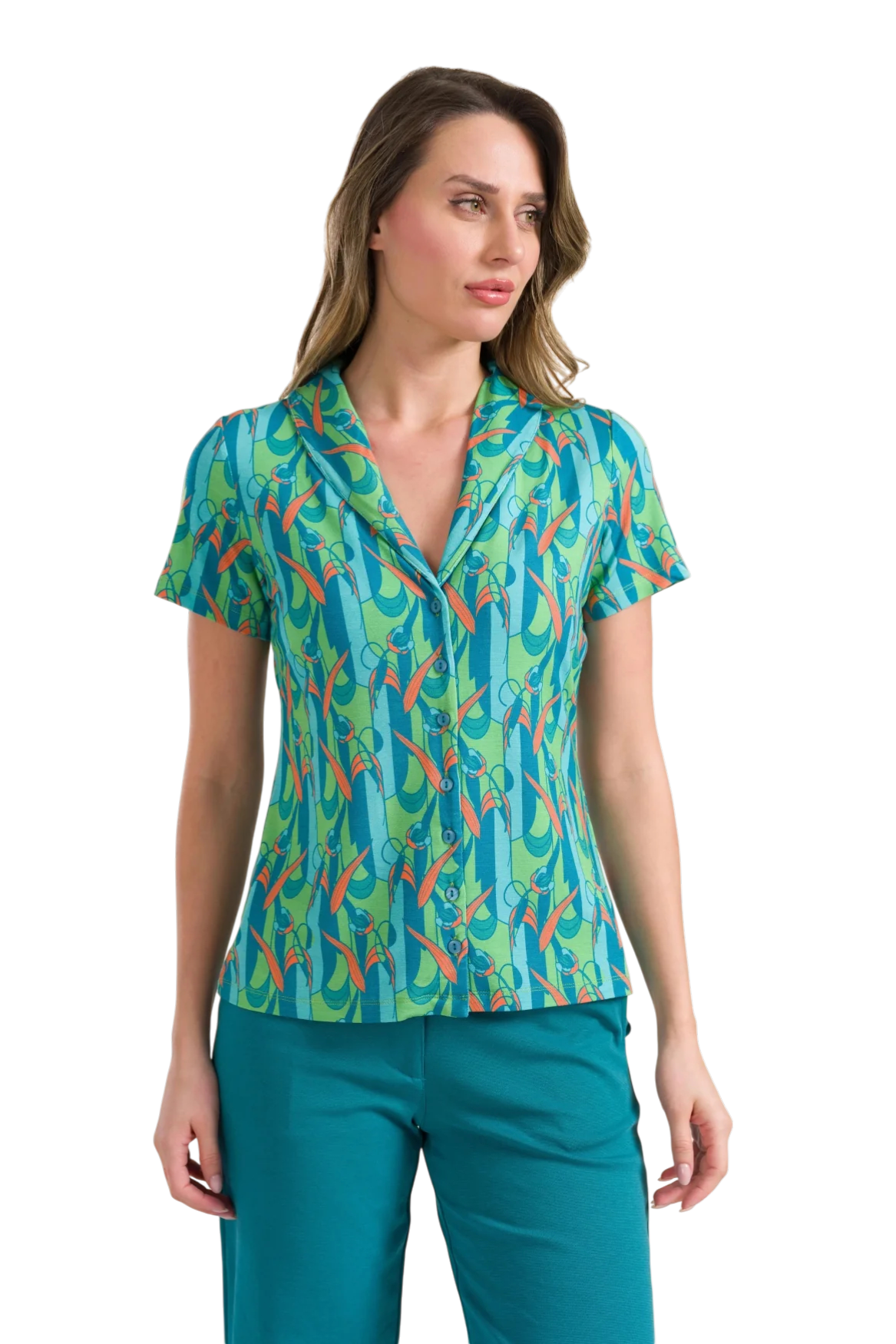 Elegant en tijdloos 🌷 De LaLamour Iris Blouse – Tulip Waltz is uitgevoerd in een verfijnde tulpenprint op zachte LENZING™ ECOVERO™ viscose.
