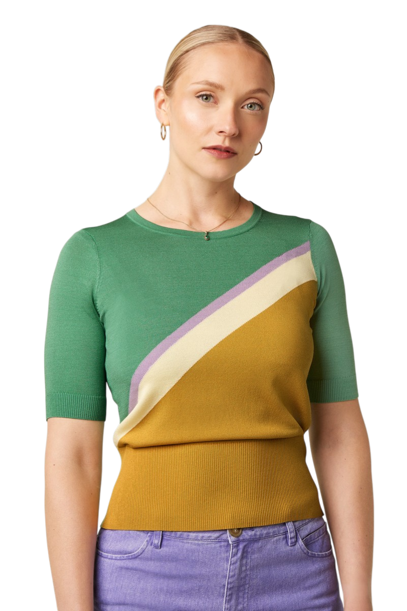 De Agnes Top Kira van King Louie is een comfortabele en stijlvolle top met een tijdloos gestreept design. De ronde halslijn en korte mouwen zorgen voor een casual, vrouwelijke uitstraling, terwijl de zachte gebreide viscosekwaliteit prettig draagt en mooi aansluit op het lichaam.