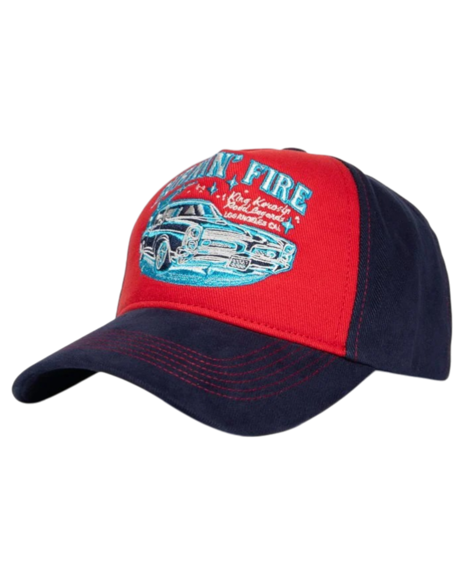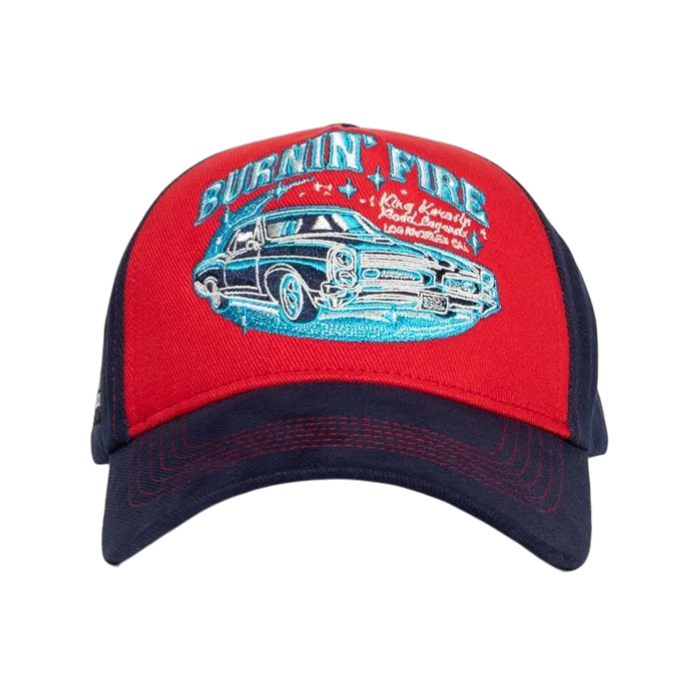 Op de voorkant staat een opvallende borduring van een legendarische oldtimer met de tekst “Burnin’ Fire” – een duidelijke knipoog naar de automobielcultuur. De gebogen klep biedt fijne bescherming tegen de zon én geeft de cap een stoere, casual uitstraling. Afgewerkt met een subtiele labelpatch aan de zijkant en een verstelbare snapback-sluiting voor de perfecte pasvorm.