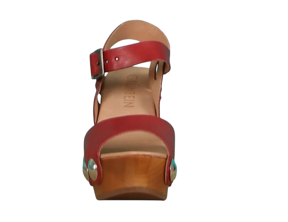 De Carmen sandaal van Grünbein heeft een stijlvolle jaren ’70 uitstraling en is voorzien van een stevige houten hak. De schoen wordt handgemaakt van natuurlijk gelooid, chroomvrij leer en combineert een retro look met modern comfort.