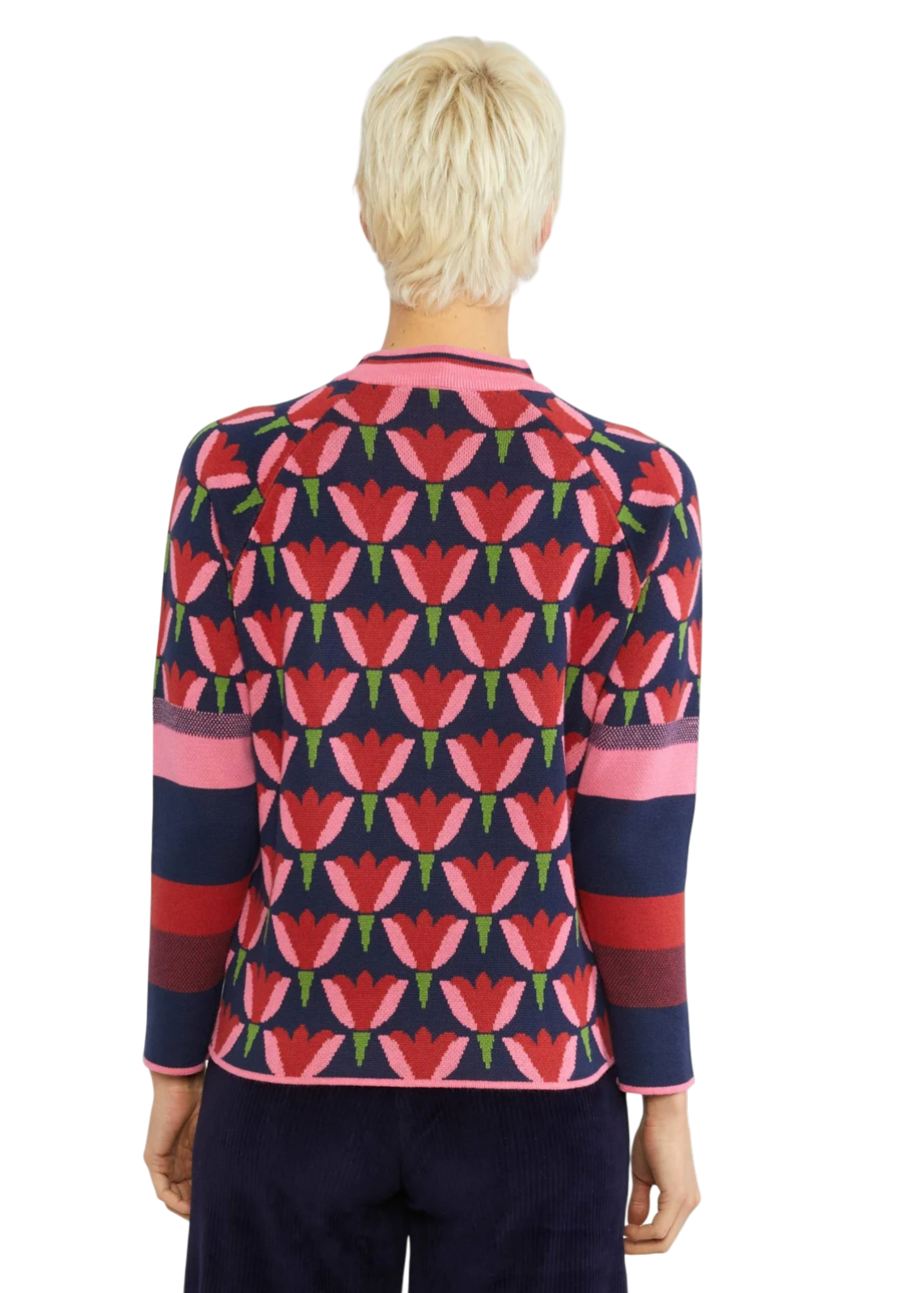 Combineer ‘m met een effen broek (bijvoorbeeld die van Bluts of HeArt) of rok zodat de print echt kan stralen, of draag ‘m casual met denim voor een cosy, kleurrijke look.