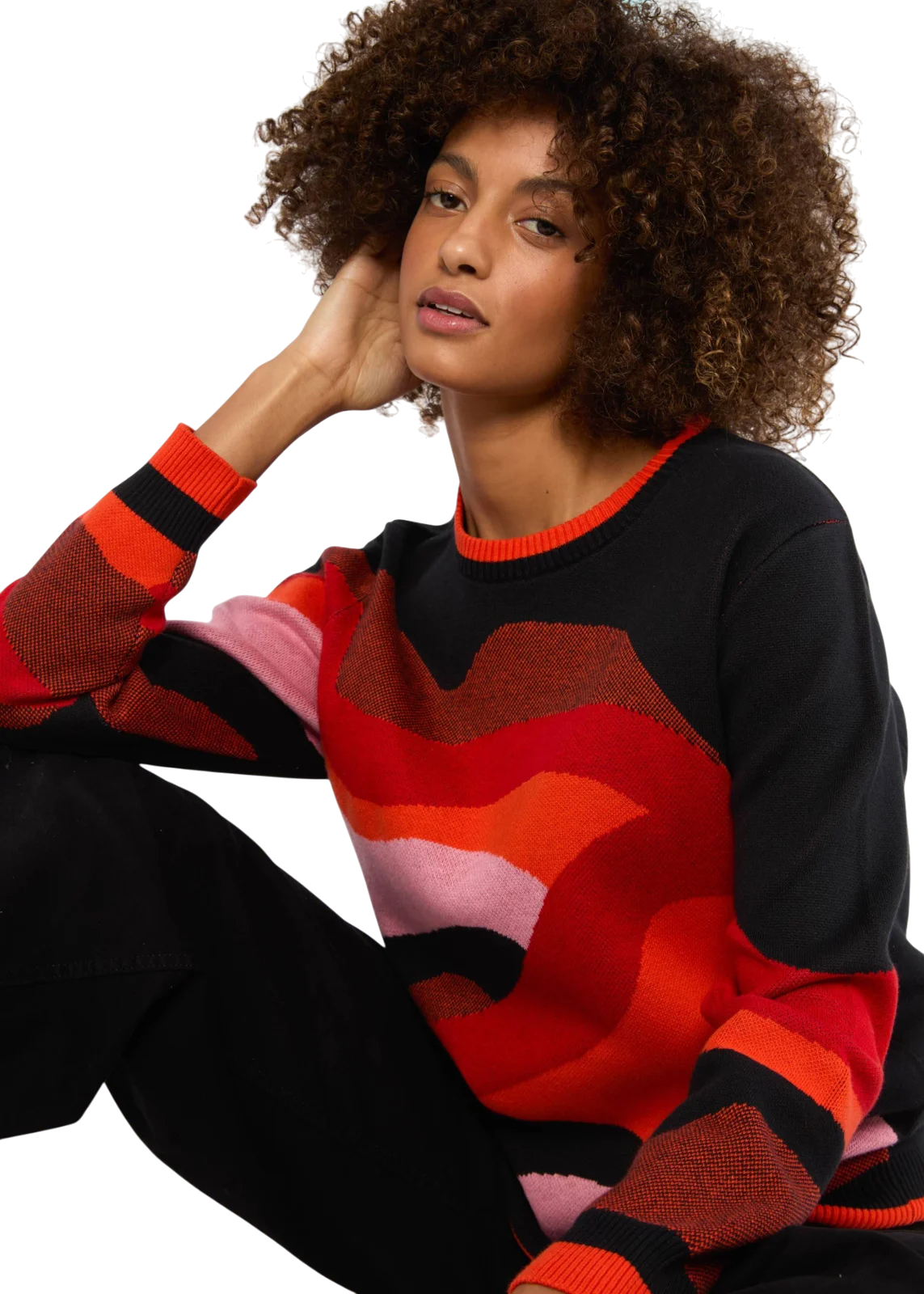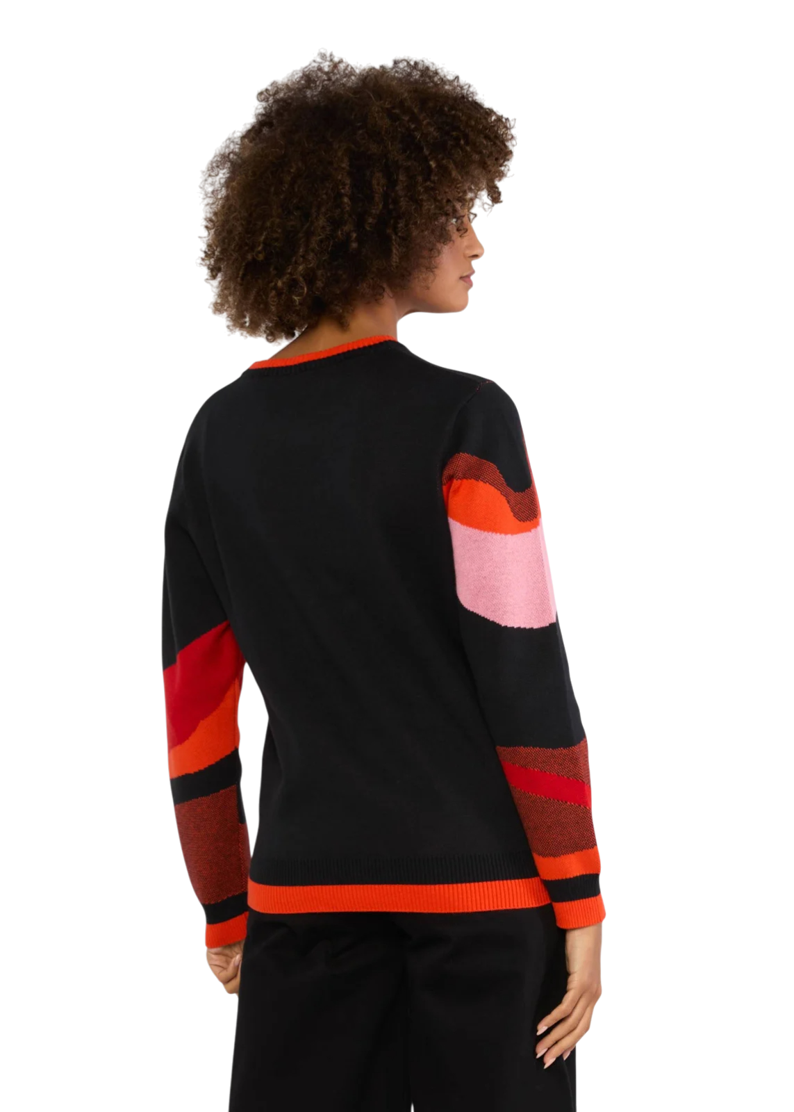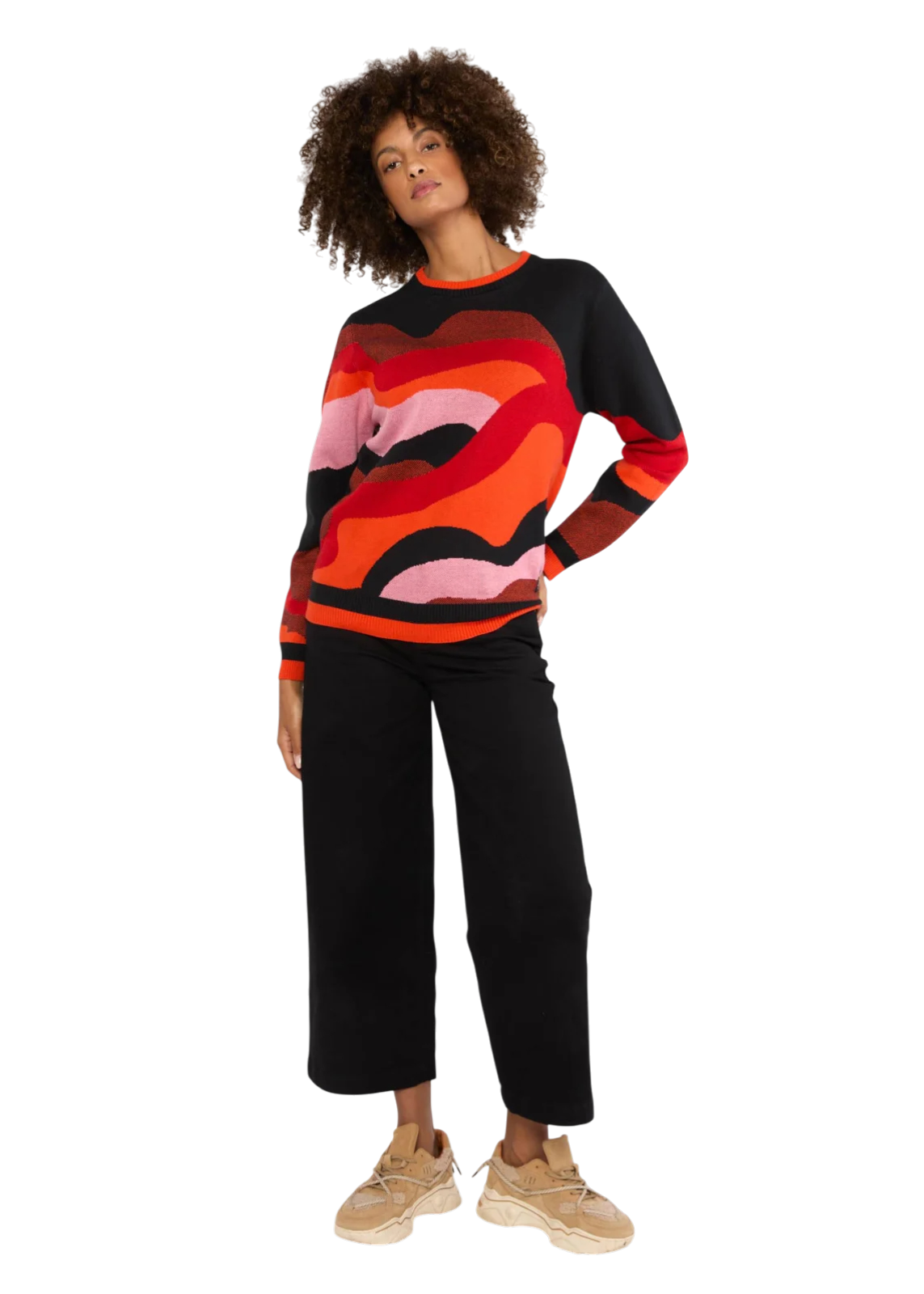 Combineer ‘m met een effen broek of rok om het artwork mooi te laten spreken, of draag ‘m casual met denim voor een cosy herfstlook.
