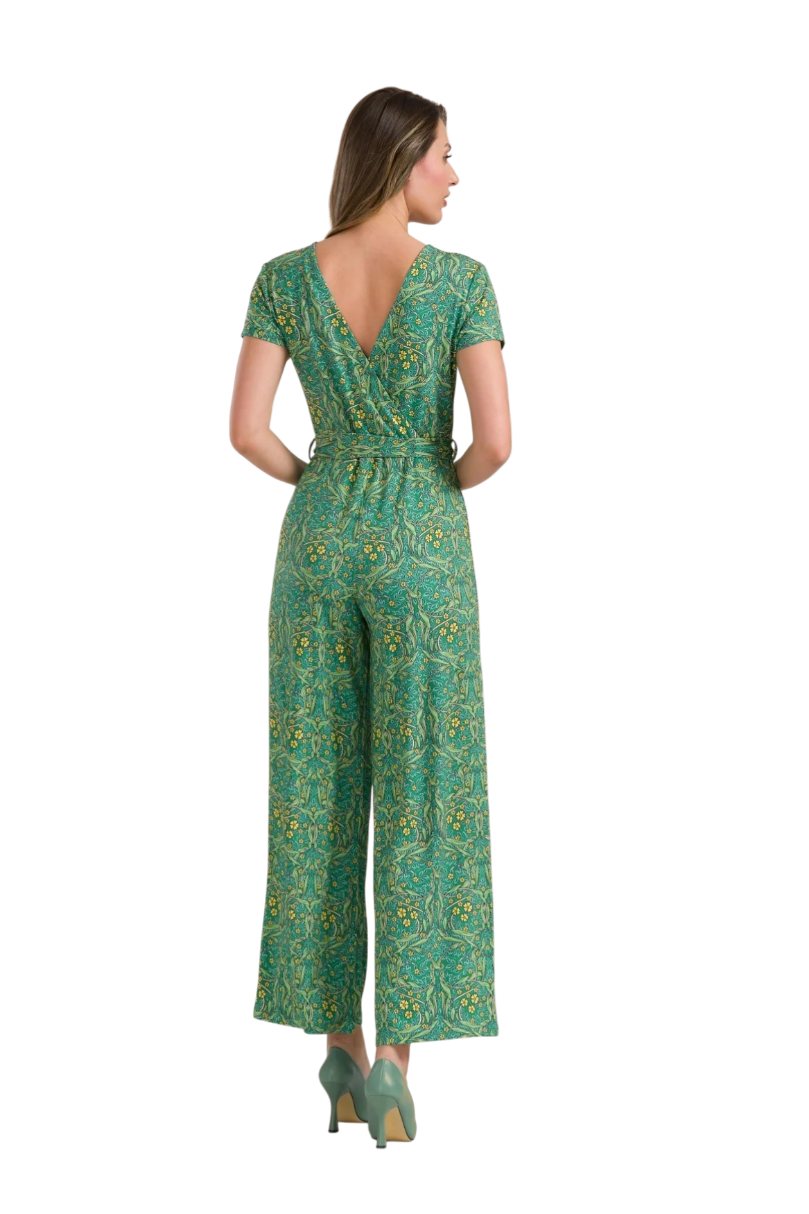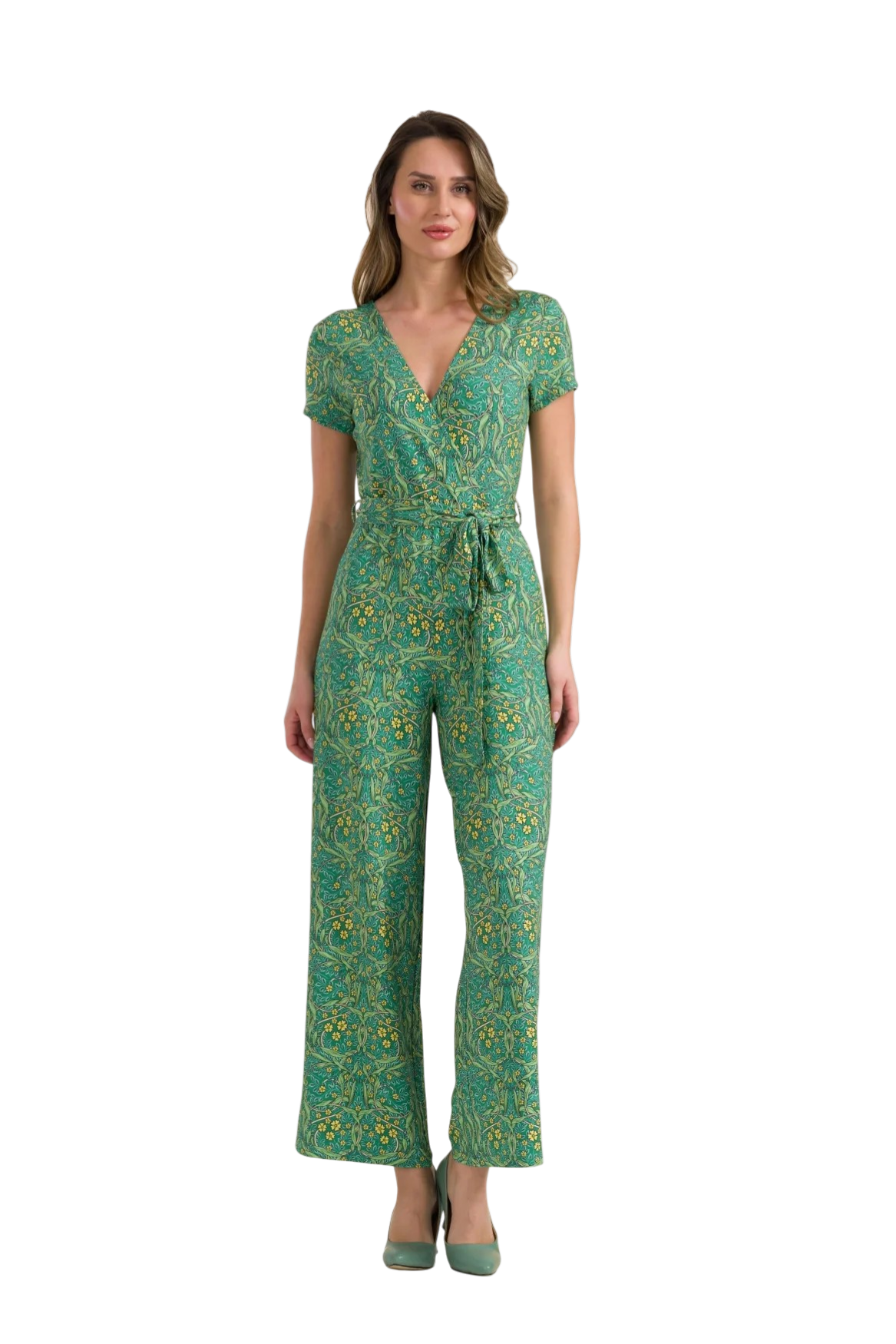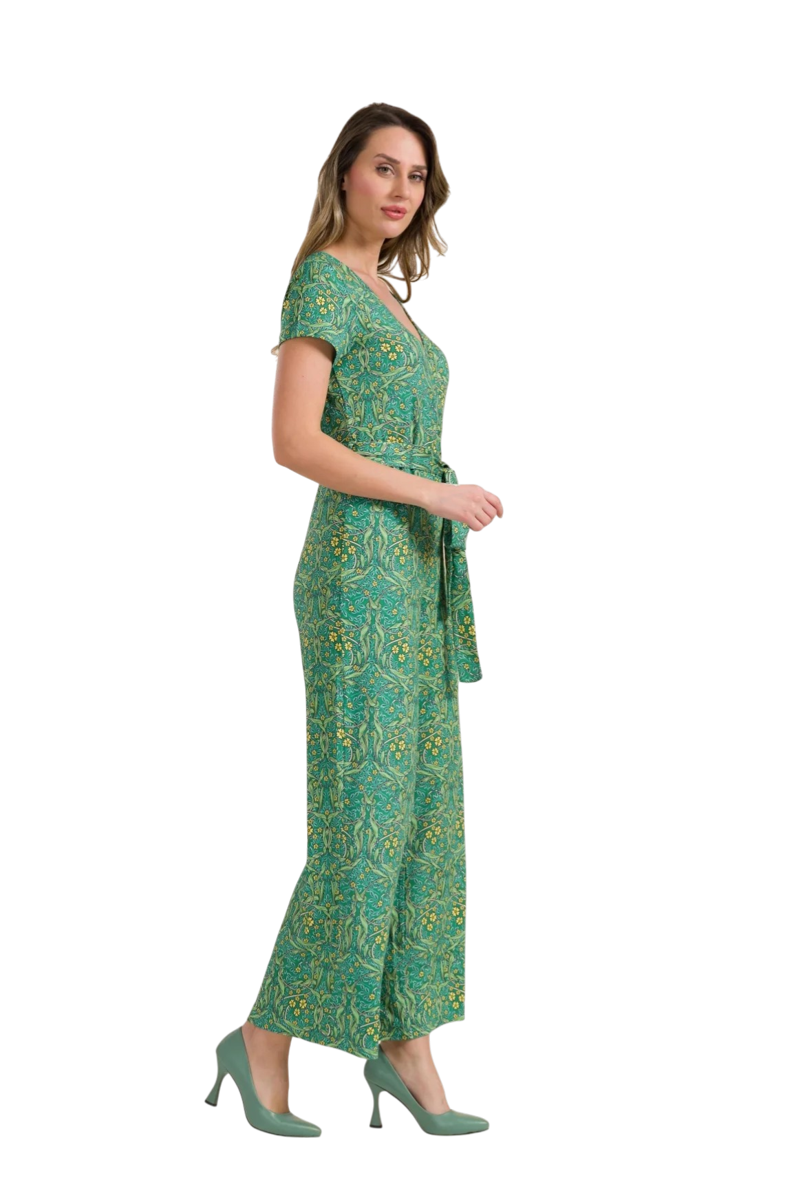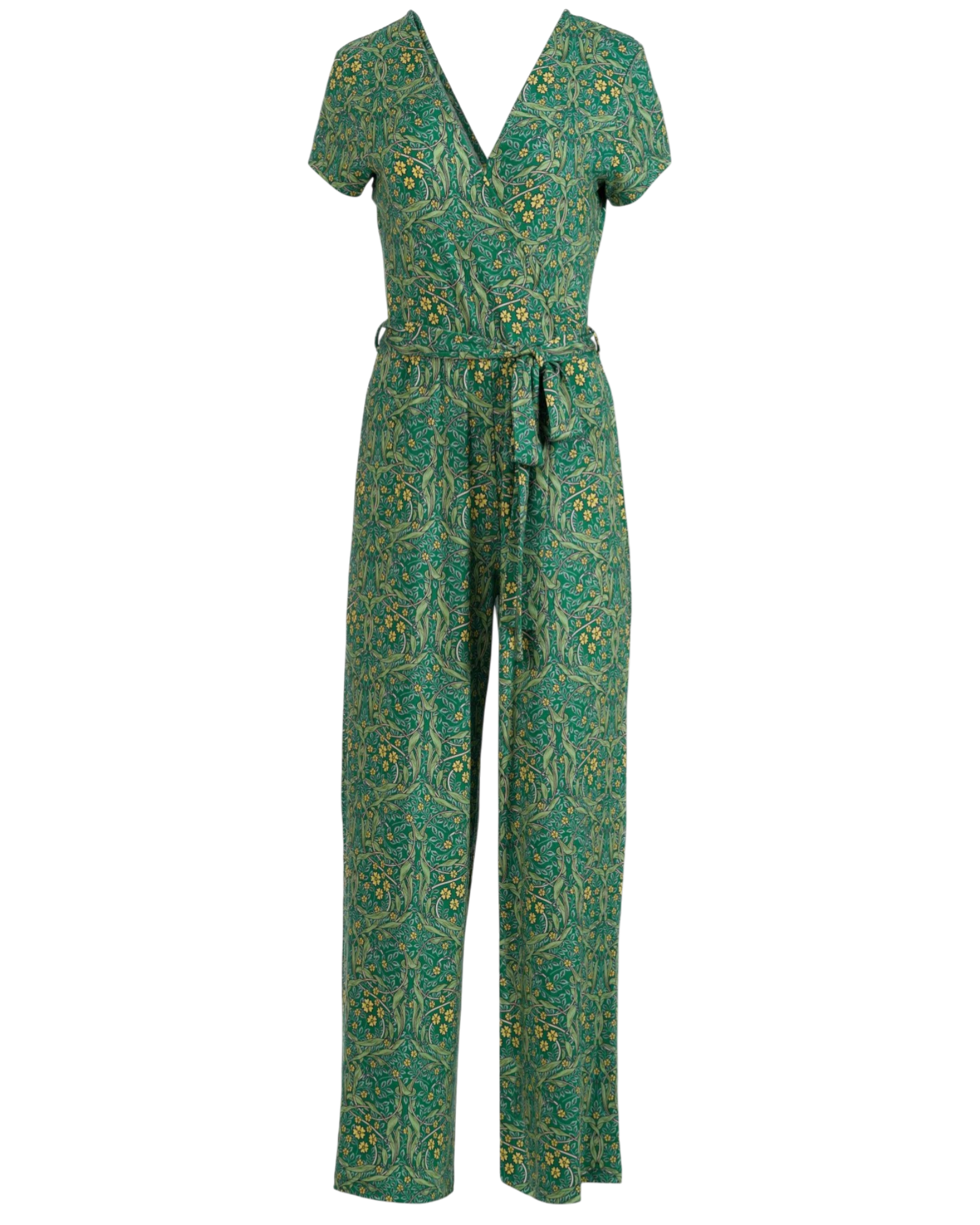 De jumpsuit is gemaakt van zachte LENZING™ ECOVERO™ viscose met elastaan, waardoor de stof soepel, ademend en prettig draagbaar is. De speelse Curly Wurly print geeft het ontwerp een vrouwelijke en ontspannen uitstraling, perfect voor zowel overdag als ’s avonds.