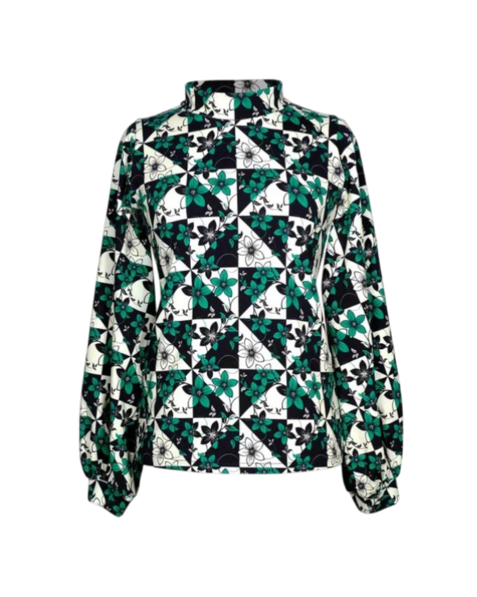 De lange mouwen met subtiele pofjes bij de manchetten geven de blouse een speelse en verfijnde touch. Het materiaal is OEKO-TEX gecertificeerd, wat betekent dat het vrij is van schadelijke stoffen en prettig draagt.