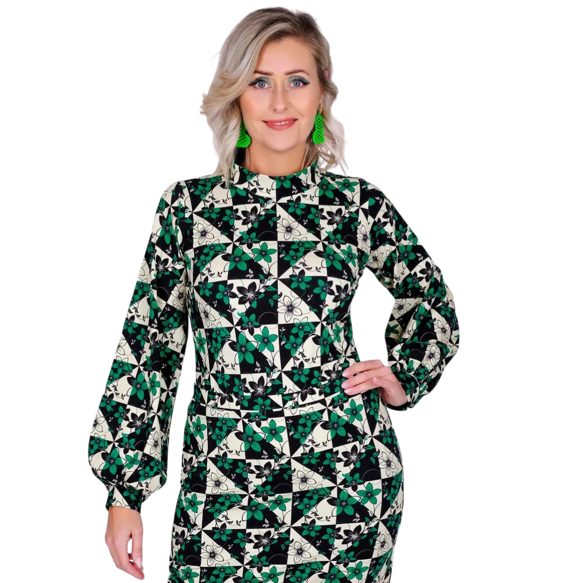 De Green Park blouse van Margot heeft een elegante groen-zwart-witte print en is gemaakt van comfortabele stretchstof. Het model heeft een normale pasvorm en een vrouwelijke uitstraling.