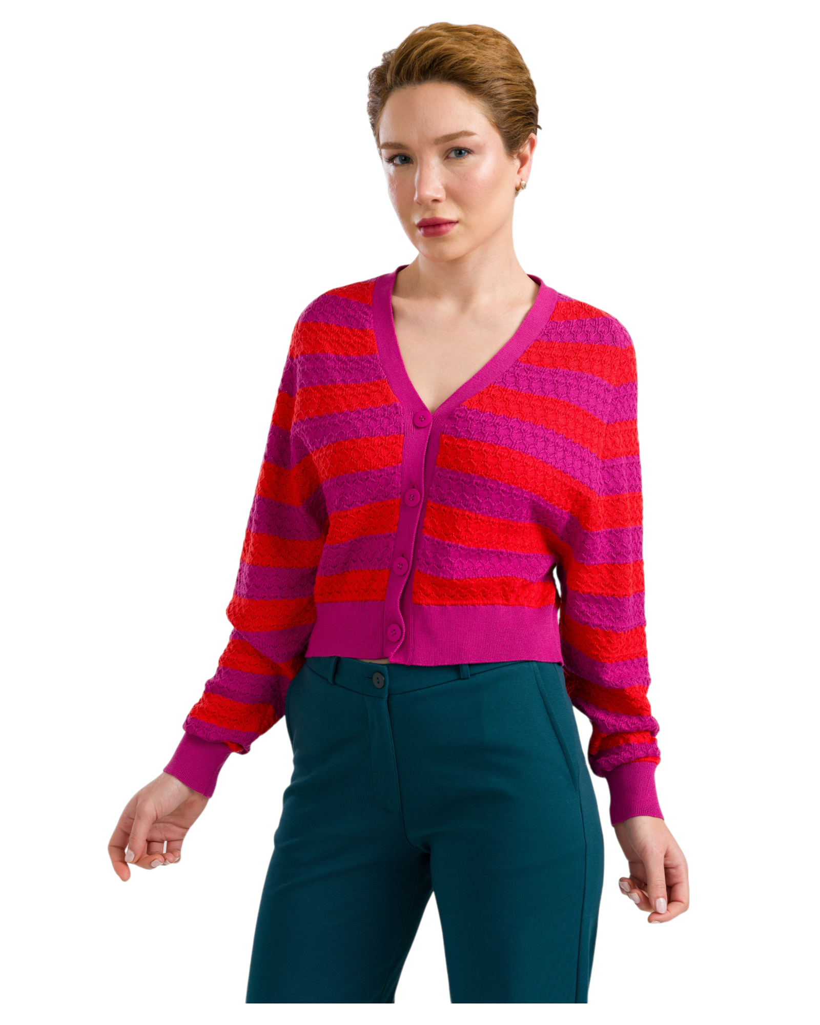 LALAMOUR 🔍 Open foto in nieuw tabblad LALAMOUR Knitwear Cardigan - Fuchsia Stripes€109,95 SKU: LASU 36475 Maat S M L XL 2XL Quantity Add to cart Samenstelling: 100% Katoen Deel dit product
