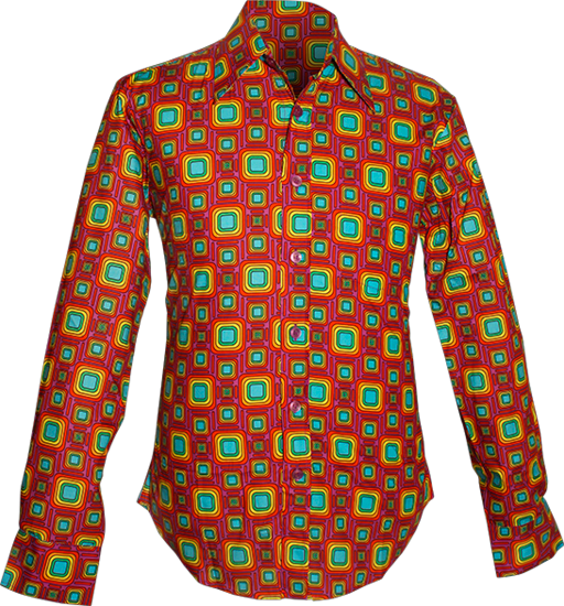 Een echte seventies statement blouse: Tube Violet, Rainbow knalt van kleur en retro vibes.