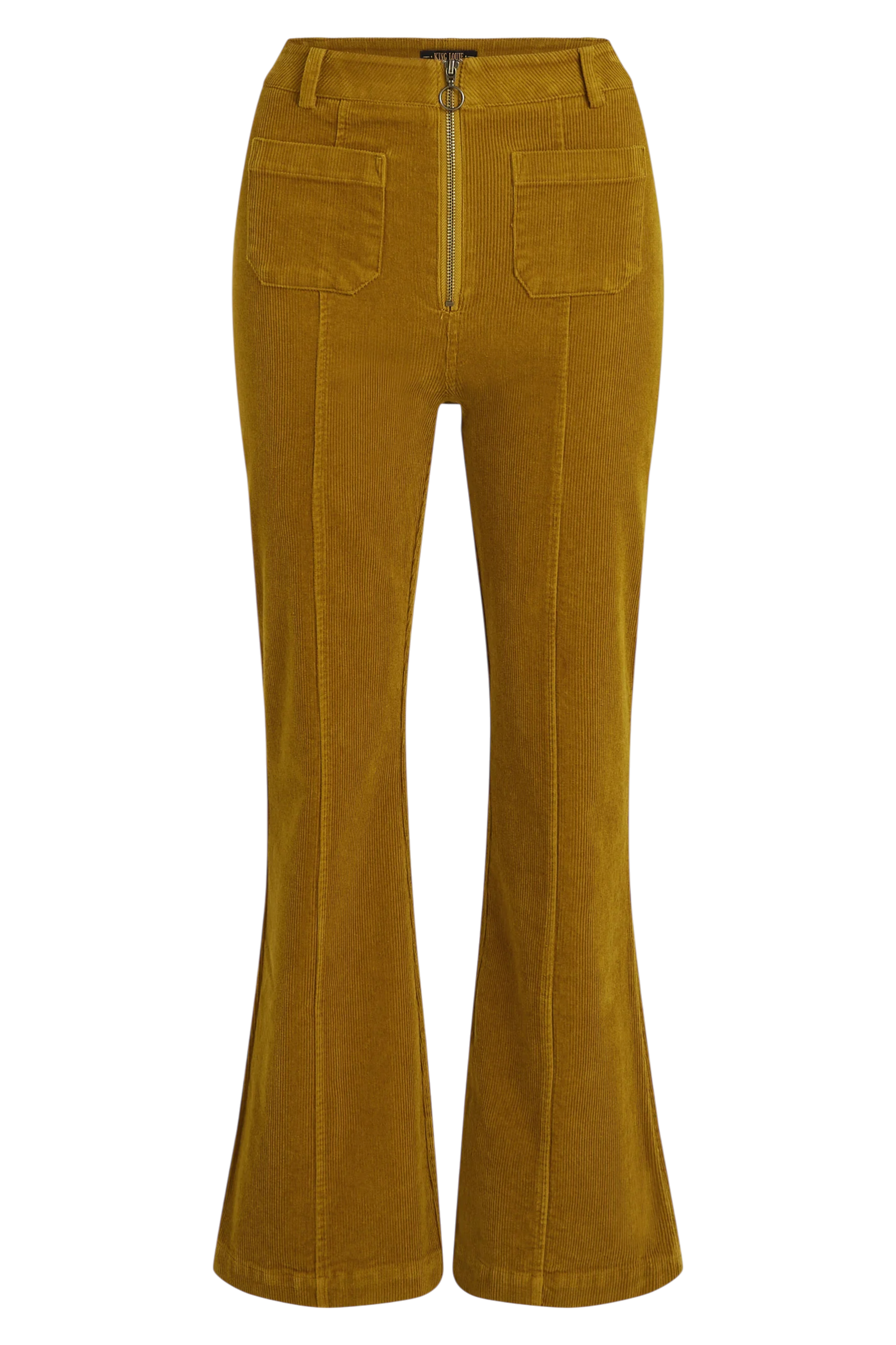Een echte seventies-klassieker in een warme tint. De Chris Zip Pants van King Louie is uitgevoerd in zacht corduroy met stretch en heeft een flatterende flared pijp voor die typische retro look.