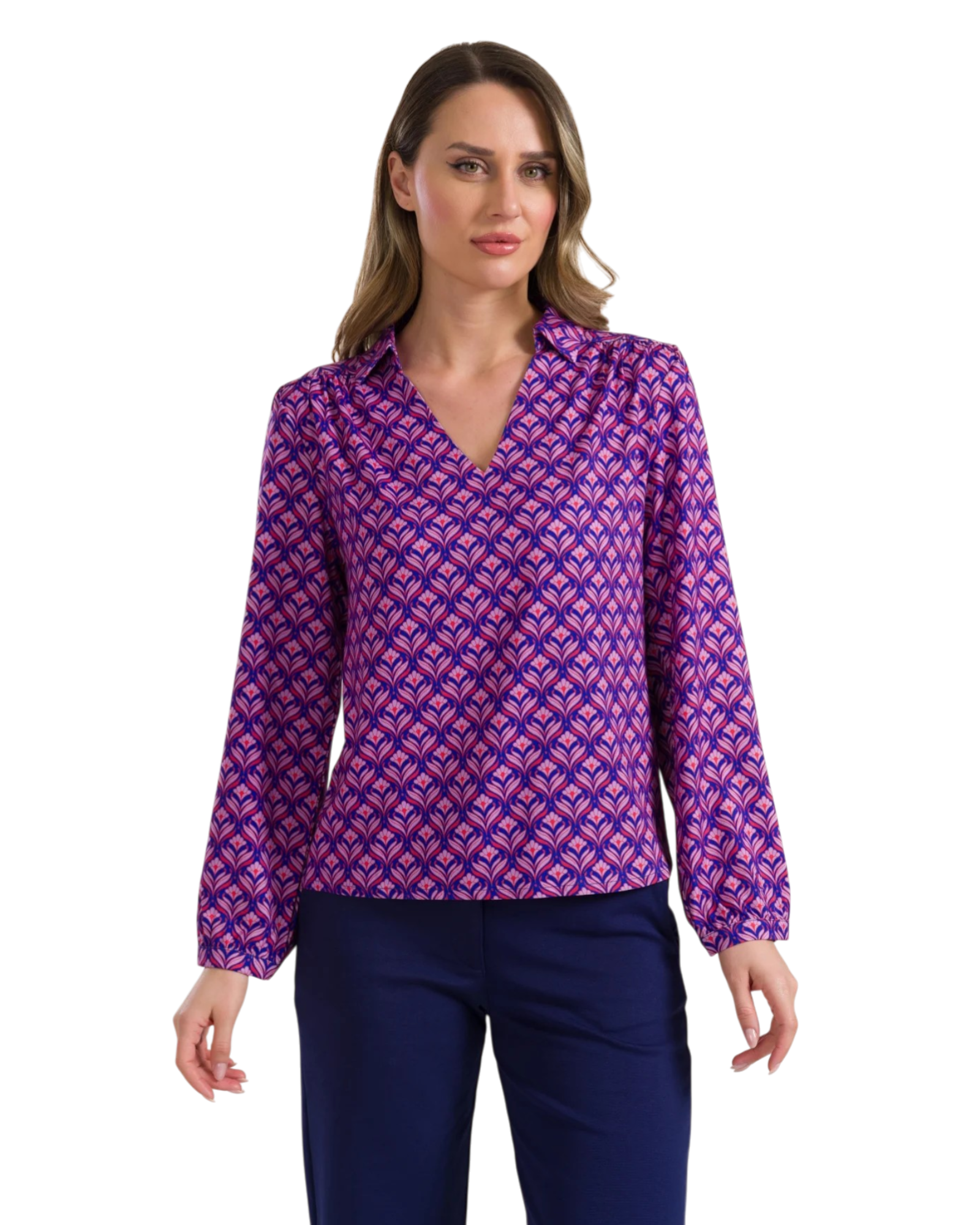 Met het elegante V-hals detail en de lange mouwen is deze blouse perfect voor zowel casual als meer geklede outfits.