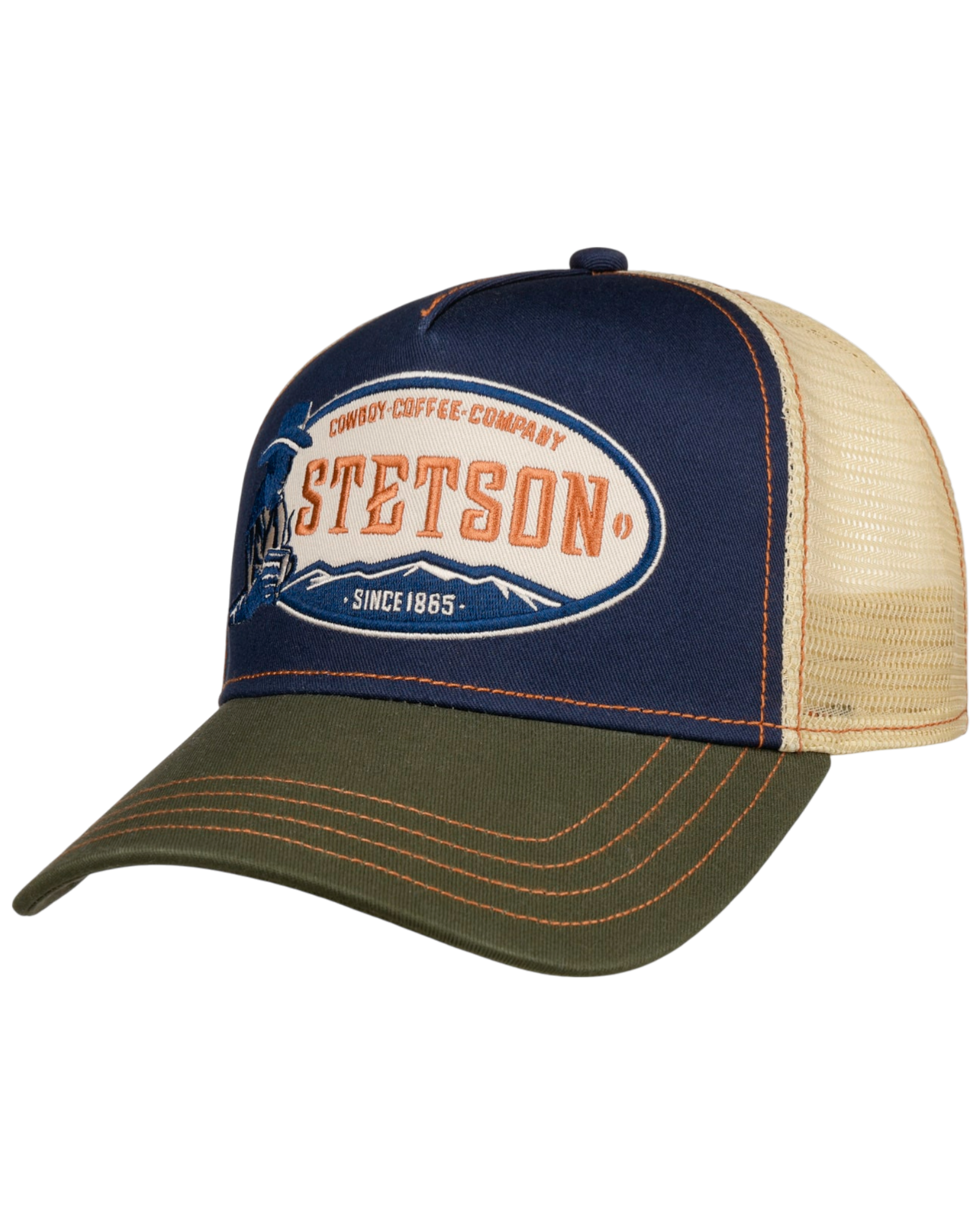 • Geborduurde Stetson Cowboy Coffee patch op de voorkant