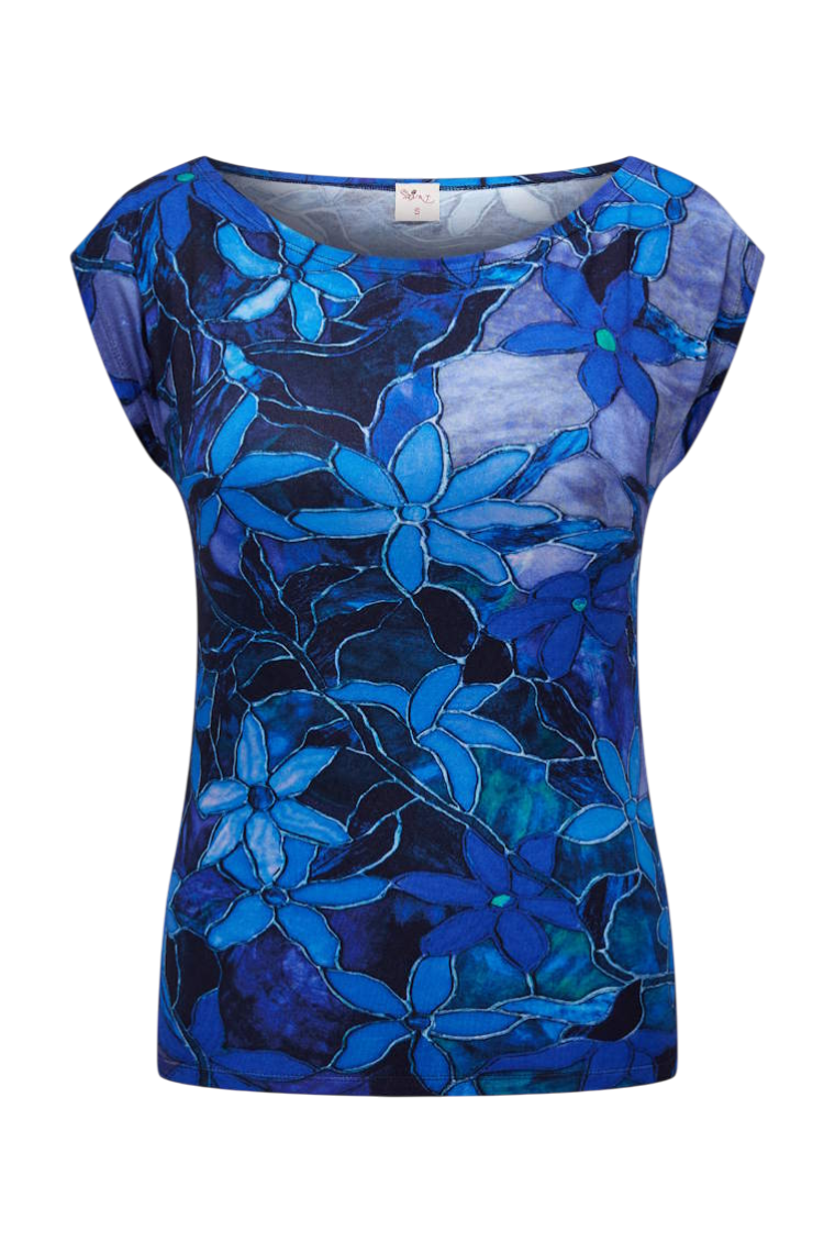 Tijdloze boothals top van zachte viscose. Het korte aangeknipte mouwtje en de soepele tricotkwaliteit maken dit shirtje comfortabel en flatterend — een ideale basis voor elke garderobe.