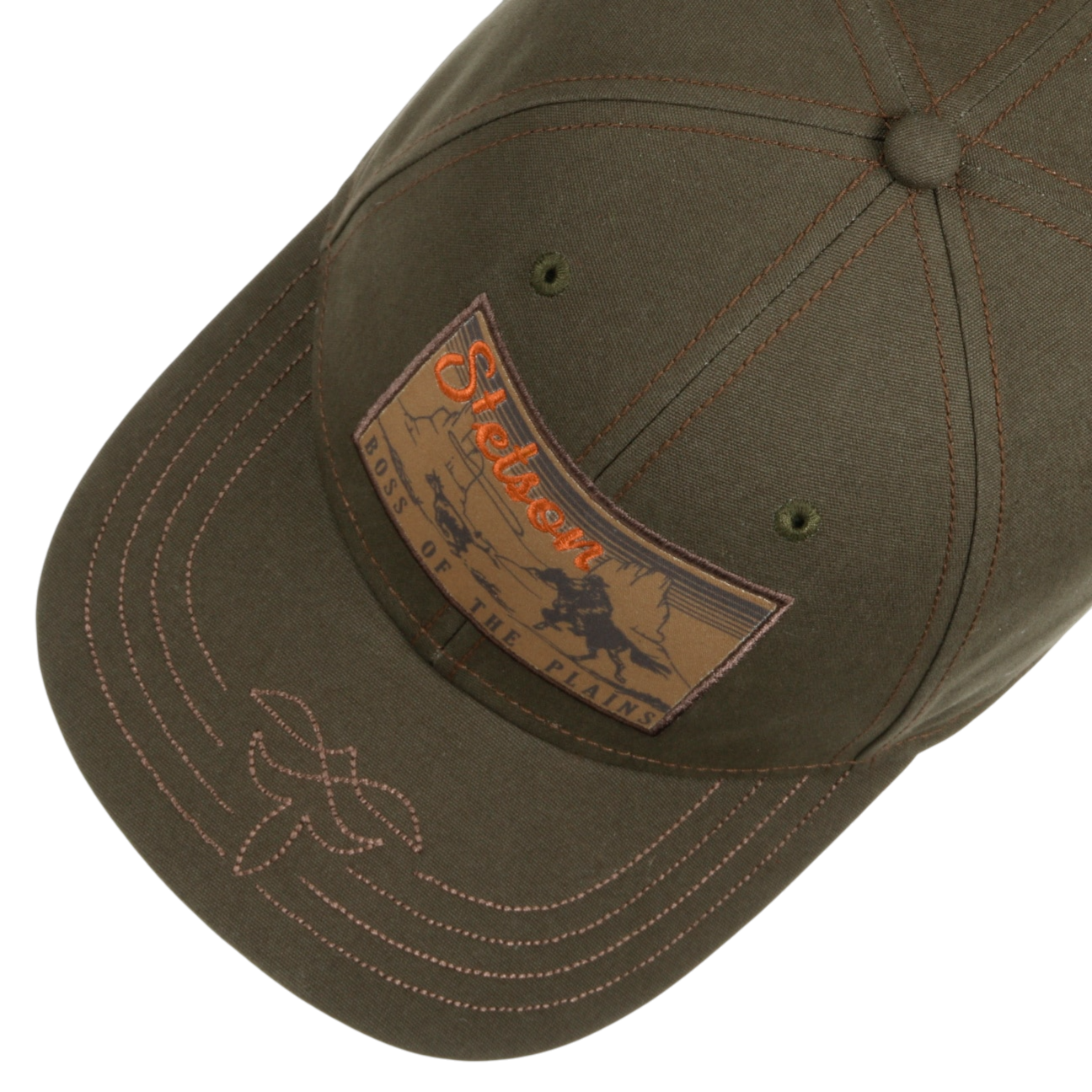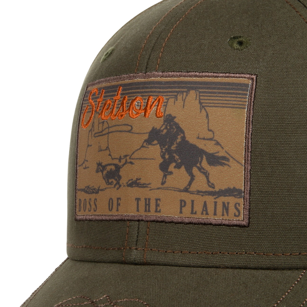 Wild West pure. De Stetson Boss of the Plains Pet in olijfgroen is een klassieke 6-panel baseball cap met western flair: contraststiksels, een opvallende front patch en een stoere, tijdloze look.