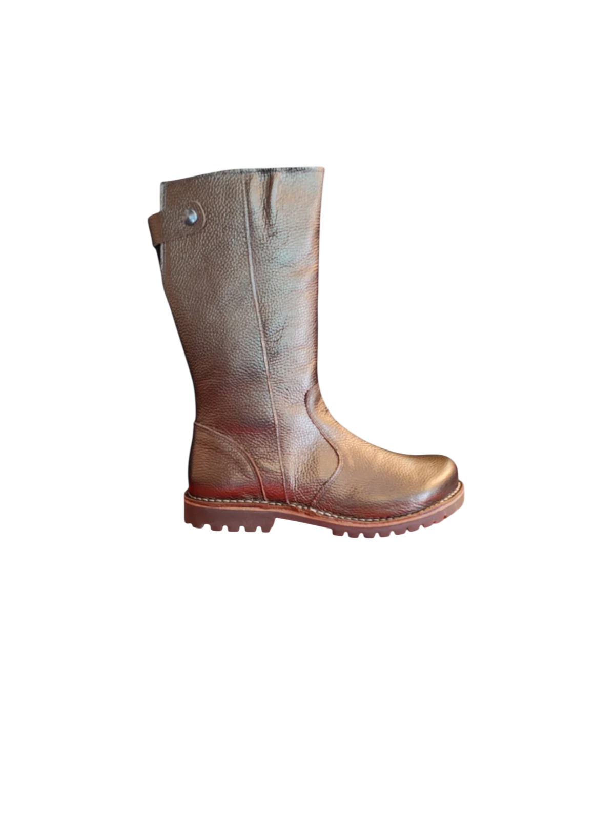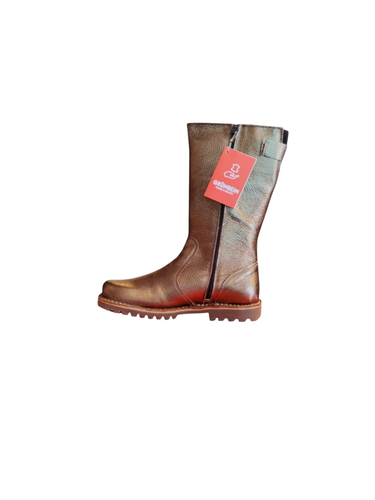 De Grünbein laars “Charlotte” is er eentje om verliefd op te worden. Een superstoere laars met een brede voet en elastiek bij de kuit – ideaal voor onze Hollandse benen 😊 En dan die kleur… old gold: brons/bruin met een subtiele gouden glans. Stoer én prachtig tegelijk.