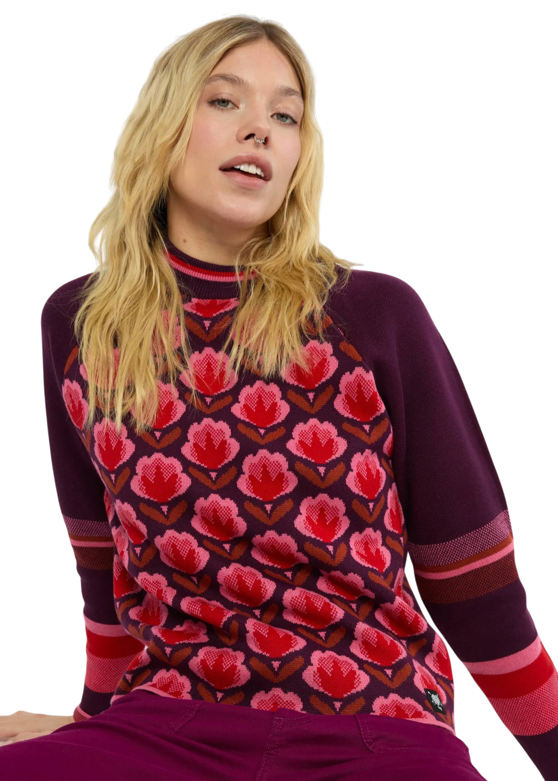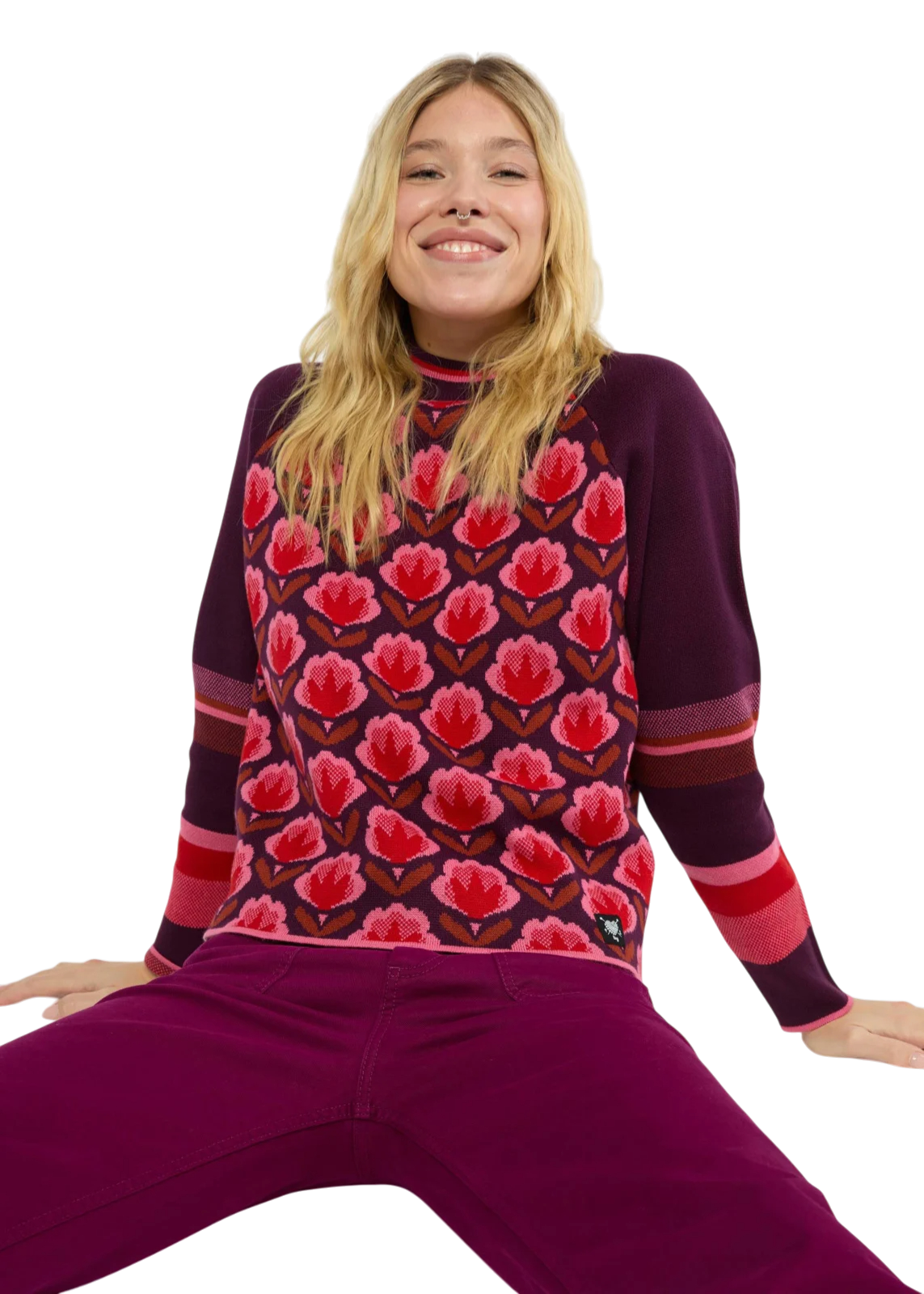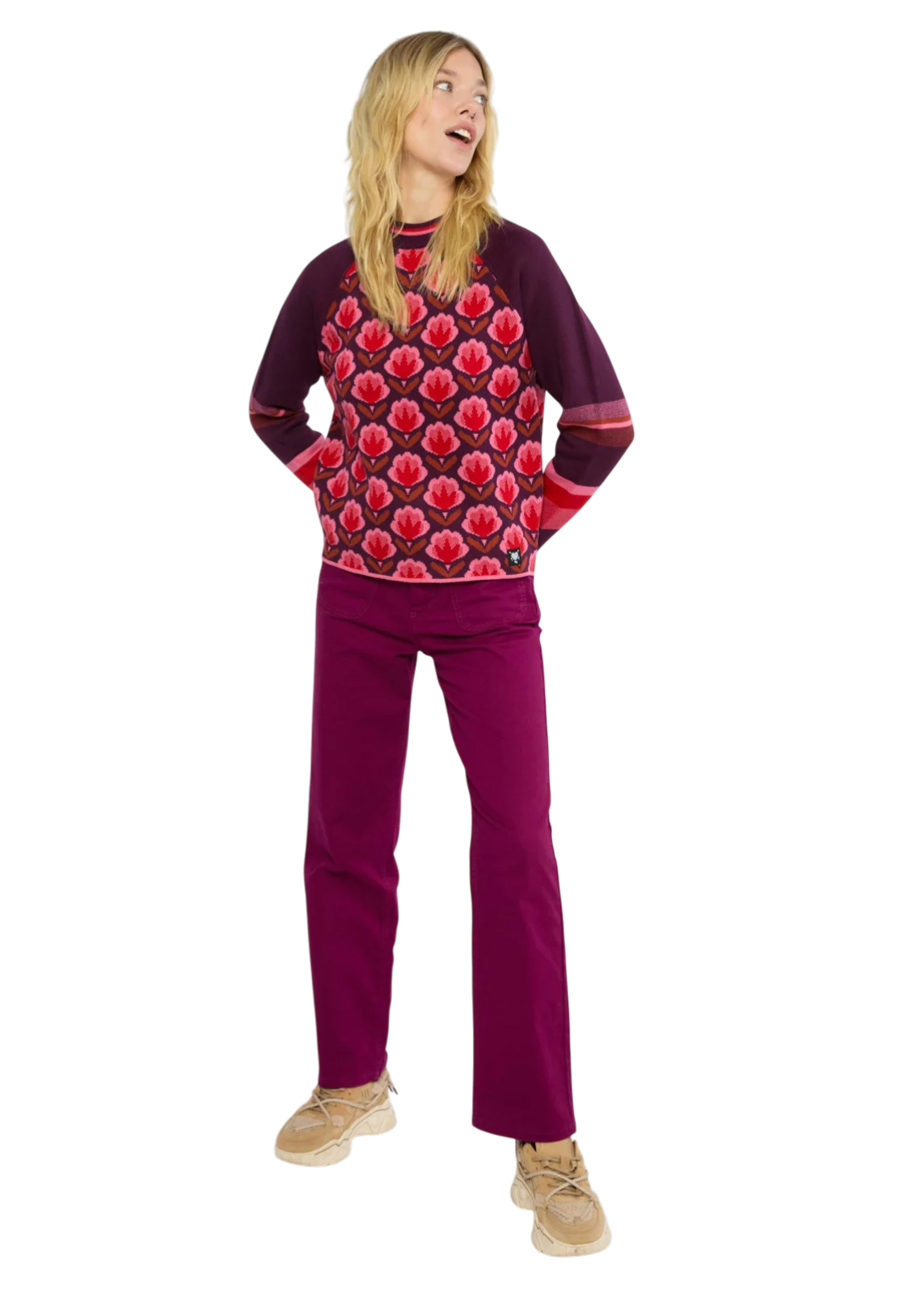 Combineer ‘m met een effen broek (bijvoorbeeld die van Bluts of HeArt) of rok zodat de print echt kan stralen, of draag ‘m casual met denim voor een cosy, kleurrijke look.