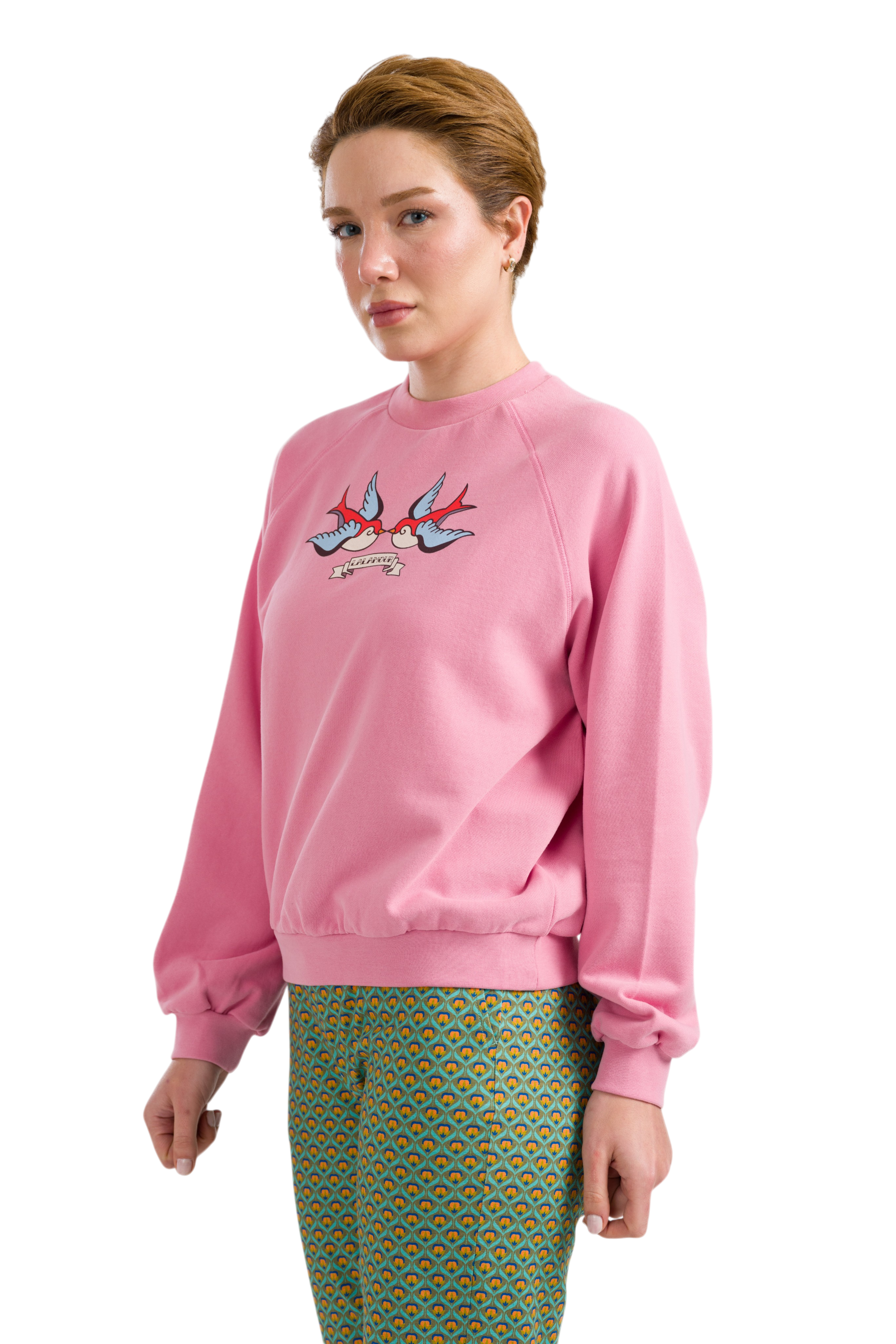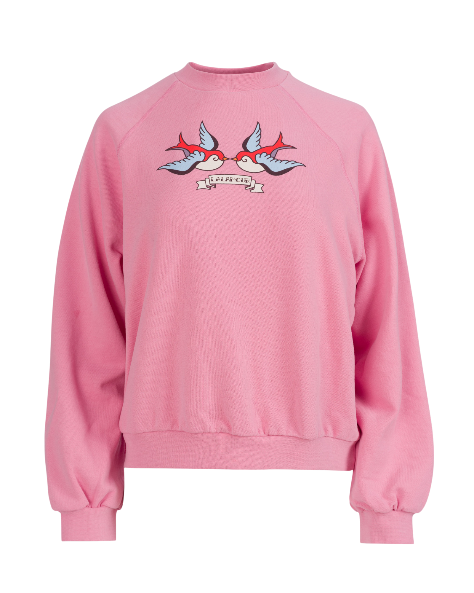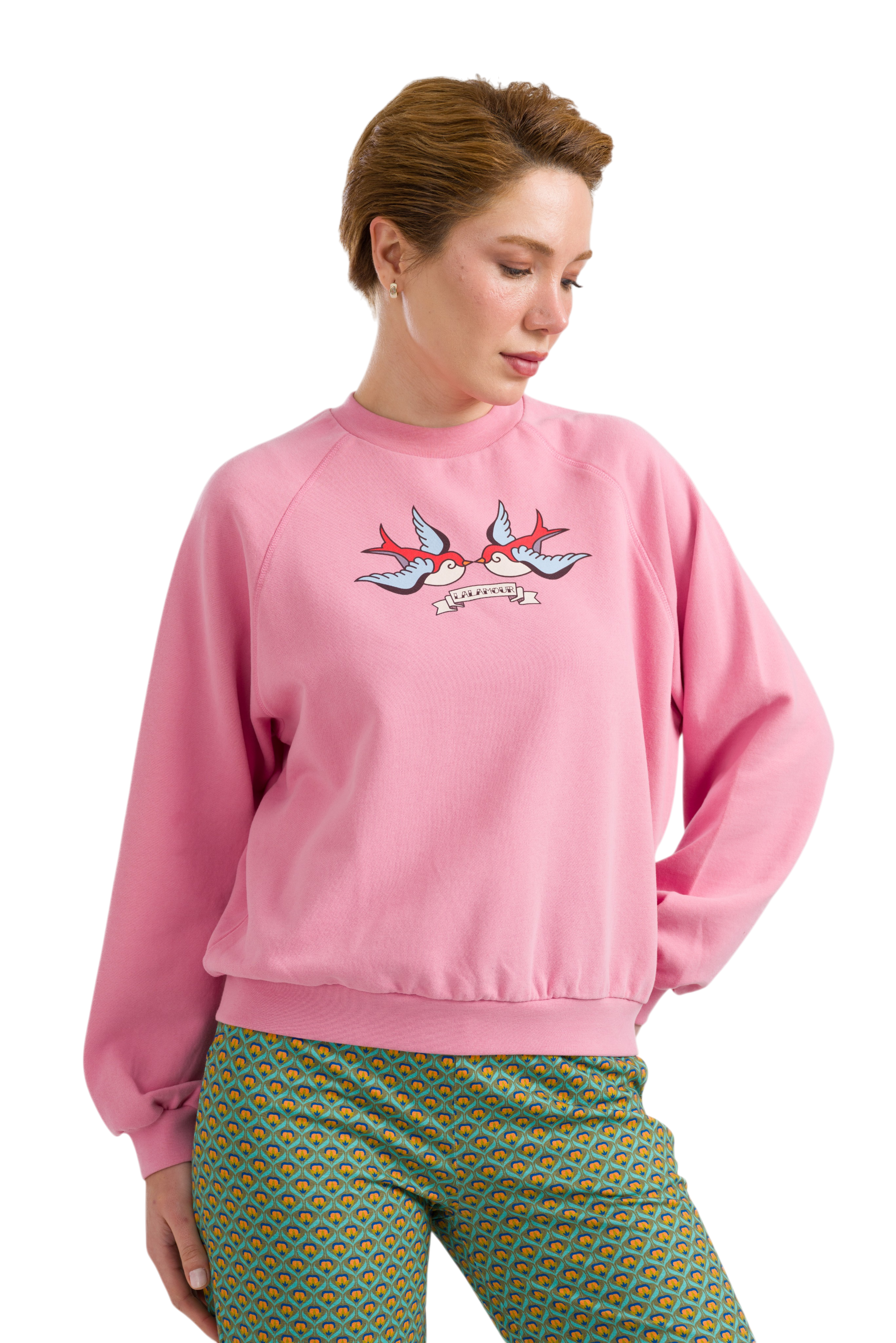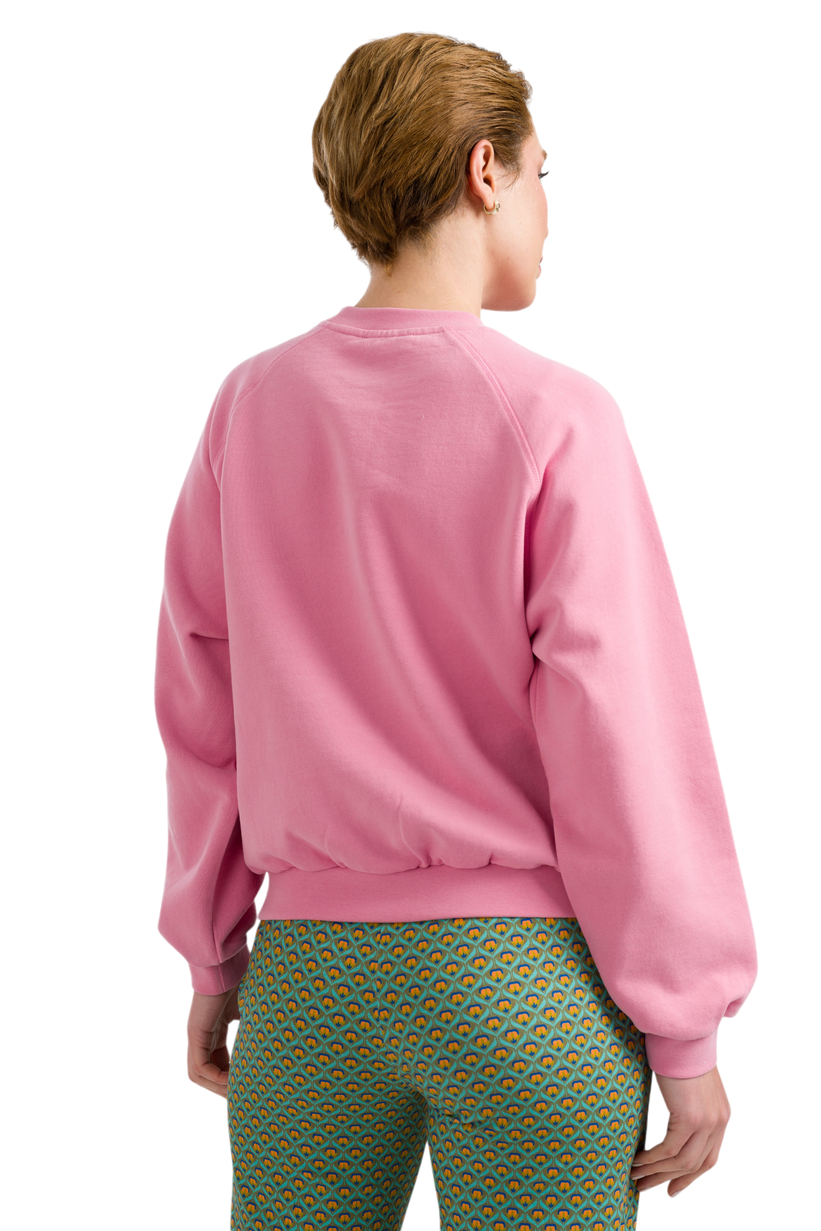 De Grace Sweater is gemaakt van 100% biologisch katoen in een zachte non-brushed fleece kwaliteit. De sweater is uitgevoerd in een subtiele zachte roze tint en voorzien van een nature-inspired print die zorgt voor een frisse en speelse uitstraling.