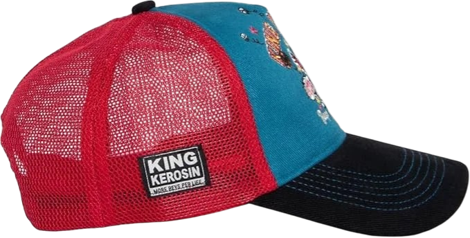 De King Kerosin Trucker Cap “Beep Beep” is een opvallende cap met stoere details. De contrasterende kleurstelling en het strakke contraststiksel op de gebogen klep geven ‘m een echte vintage trucker vibe. Afgewerkt met een subtiele labelpatch aan de zijkant en een verstelbare 7-gaats sluiting voor de perfecte pasvorm.