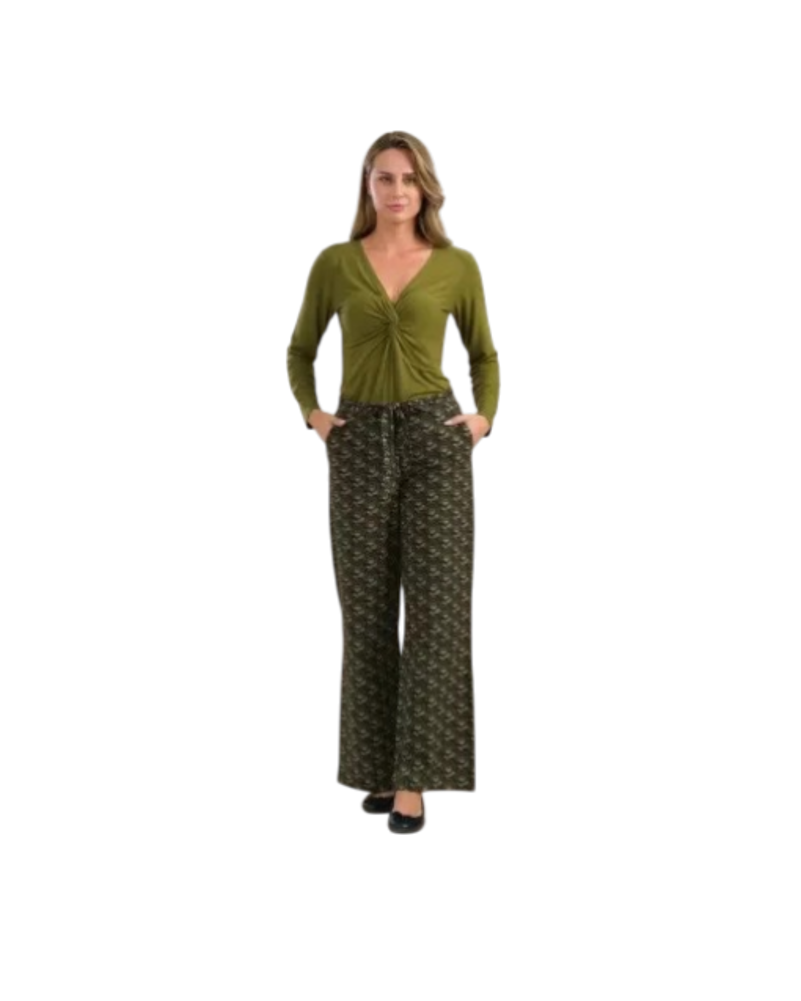 Lalamour – Sue Trousers Jersey (Abstract Flower Green)